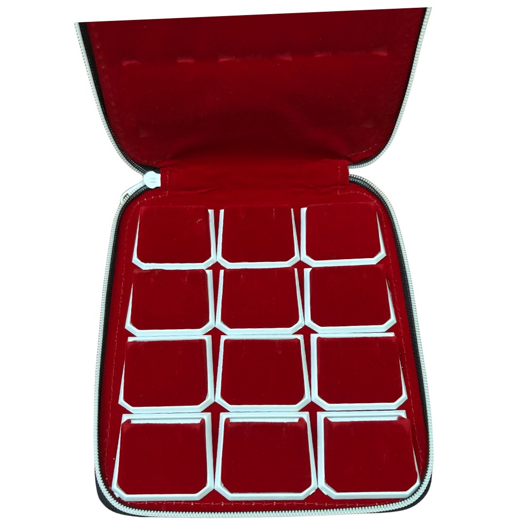 THAMBI 12-Set Earring & Studs Jewellery Box Pouch for Women & Girls | 8×7 Inch Storage Vanity Box (Red)